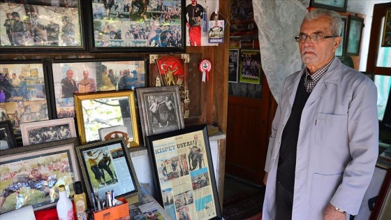 Şahin, 64 yıldır el emeği, göz nuru kispetlerini birçok başpehlivana giydirmenin gururunu yaşıyor.