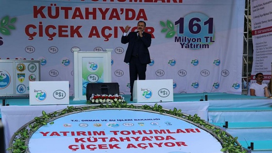 Orman ve Su İşleri Bakanı Veysel Eroğlu, Kütahya'da DSİ tarafından 161 milyon liraya inşa edilecek 8 tesisin toplu temel atma törenine katıldı, orman köylülerine kullandırılan gelir getirici tür ve ORKÖY kredi sertifikaları dağıtımını gerçekleştirdi.