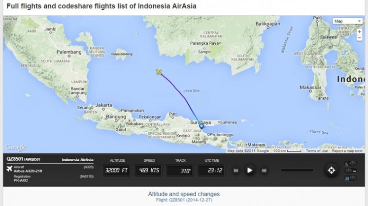 Endonezya Ulaştırma Bakanlığının açıklamasında, uçağın Kalimantan ile Java Adası arasında bulunan Java Denizi üzerinde düştüğünün tahmin edildiği, arama çalışmalarının Singapur, Avustralya ve Malezya ile ortak yürütüldüğü bildirildi.