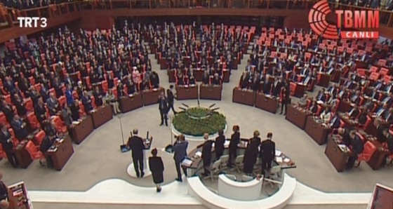 Cumhurbaşkanı Recep Tayyip Erdoğan Genel Kuru Salonu'na girdiğinde bazı CHP ve HDP milletvekilleri ayağa kalkmadı.