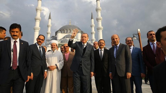 Bakan Özhaseki ile Diyanet İşleri Başkanı Görmez'den camideki çalışmalar hakkında bilgi Erdoğan, çıkışta işçilerle fotoğraf çektirdi.