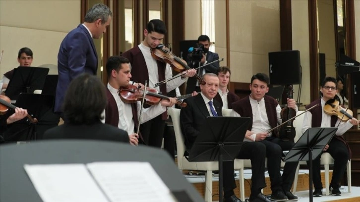 Cumhurbaşkanlığı Külliyesi'ndeki dün akşamki iftar programında, tasavvuf ve klasik Türk müziği dinletisinde enstrüman çalan öğrencilerin arasına oturarak eşlik eden Cumhurbaşkanı Erdoğan, "İşte bu akşam burada, orkestrayı dinledik ve inşallah bu ortaöğretim öğrencileri olan bu yavrularımız Cumhurbaşkanlığı Senfoni Orkestrası Salonu'nda da bize şöyle dolu dolu bir gece yaşatacaklar. Başarılar diliyorum." ifadeleriyle memnuniyetini dile getirmişti.