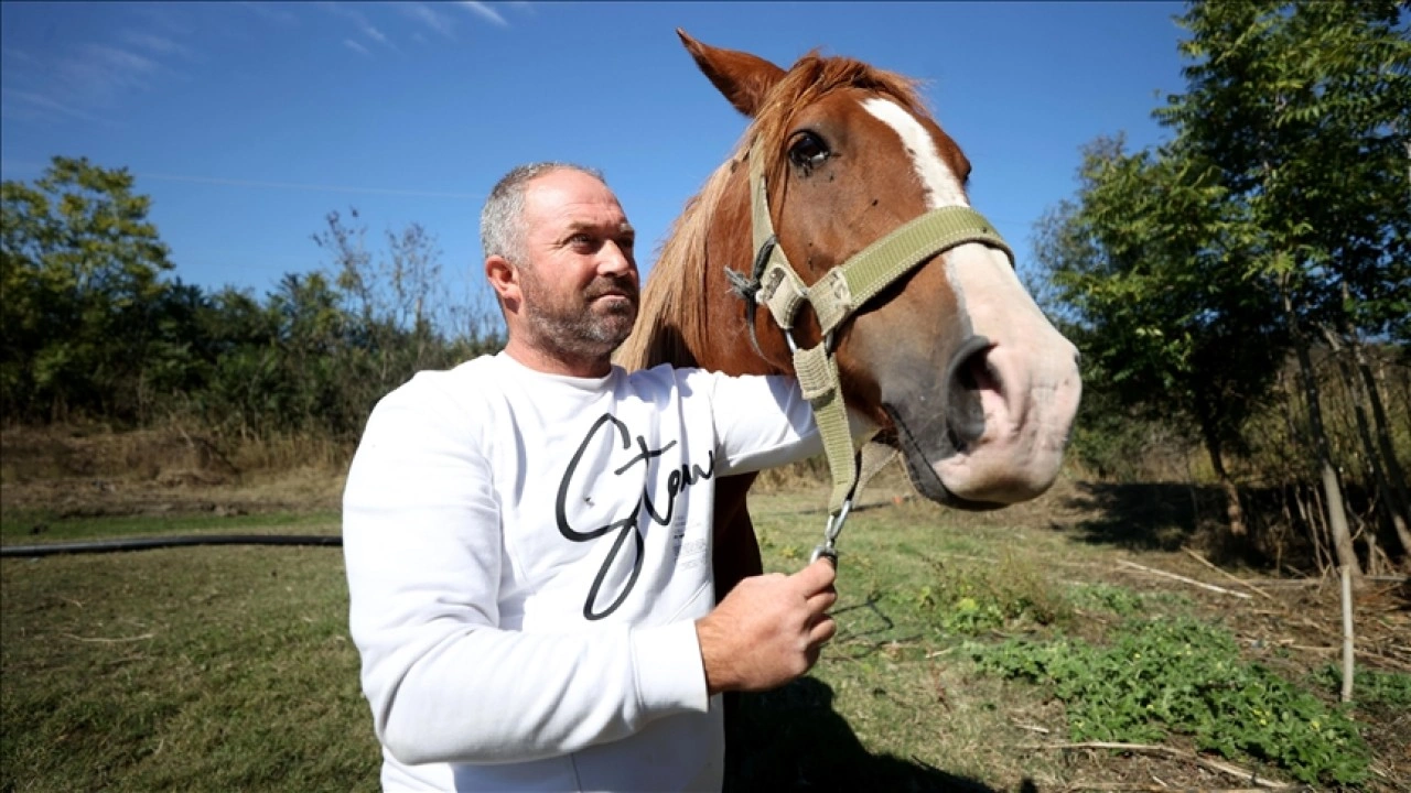 Dedesinden kalan çiftlikte 8 atla ilgilenen Akay, bakım, antrenman ve yetiştiricilik çalışmalarını sürdürüyor.