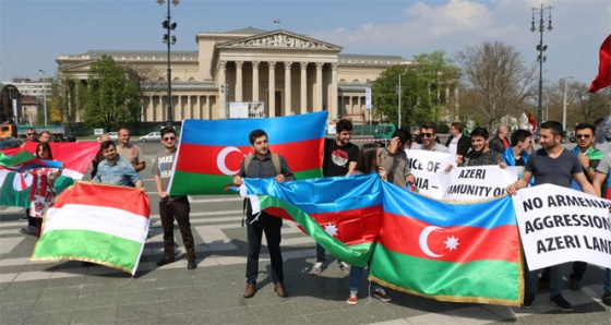 Budapeşte’nin turistik mekanlarından Kahramanlar meydanında toplanan yaklaşık 100 kişi, taşıdıkları Azerbaycan, Türkiye ve Macaristan bayraklarıyla Ermenistan’ı protesto etti. Macaristan’da yaşayan Azerbaycan, Türk ve Macar yurttaşların katıldığı gösteride ellerindeki pankartlara İngilizce, Macarca ve Azerbaycan Türkçesiyle Ermenistan’ın Dağlık Karabağ’dan bir an önce çıkması istendi. Öte yandan protestocular “Ermeni terörünü durdurun”,“Karabağ Azerbaycan’ındır”, “Azerbaycan savaş istemiyor” yazılı pankartlar taşıdı. “Karabağ bizimdir bizim olacak”, “Ya Karabağ ya ölüm, başka yolu yok artık”, “Şehitler ölmez vatan bölünmez” sloganlarını atan kalabalık, daha sonra Azerbaycan milli marşını okudu. Eylemin organizasyonunu yapan Macaristan-Azerbaycan Dostluk Derneği Başkanı Ramiz Amirli, Budapeşte’de yaşayan Azerbaycanlı yurttaşlarla birlikte Nisan ayı başında Ermenistan’ın başlattığı savaşı protesto etmek amacıyla eylem yaptıklarını söyledi. Amirli, bütün Türk dünyasının Ermenistan’a karşı birlik olmasını Macarlarla beraber protesto ettiklerini belirterek "Azerbaycan topraklarına sahip çıkacak. Şehitlerimizin ruhları için dua ediyoruz’’ diye konuştu.