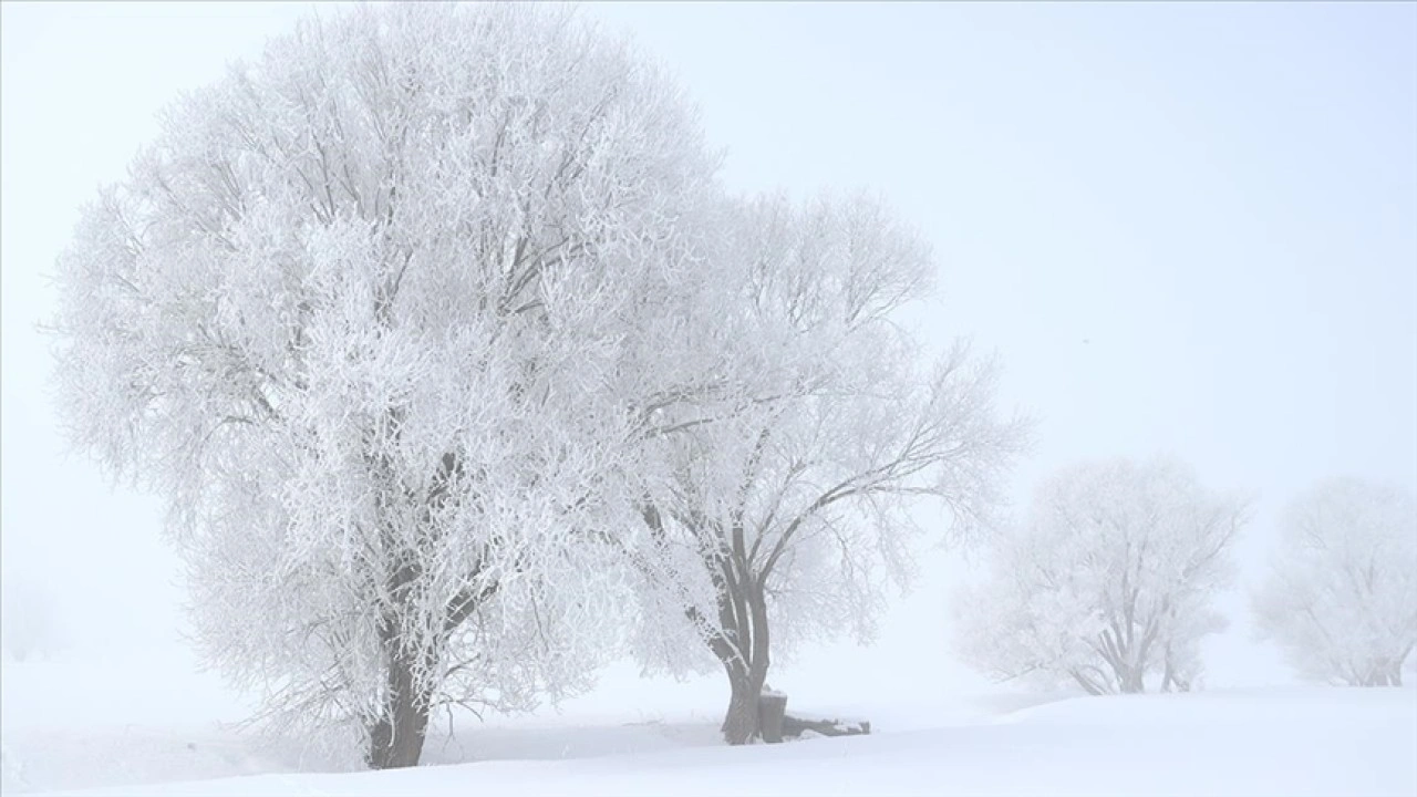 Ağaçların kırağı tuttuğu kent merkezinde sis de etkili oldu .