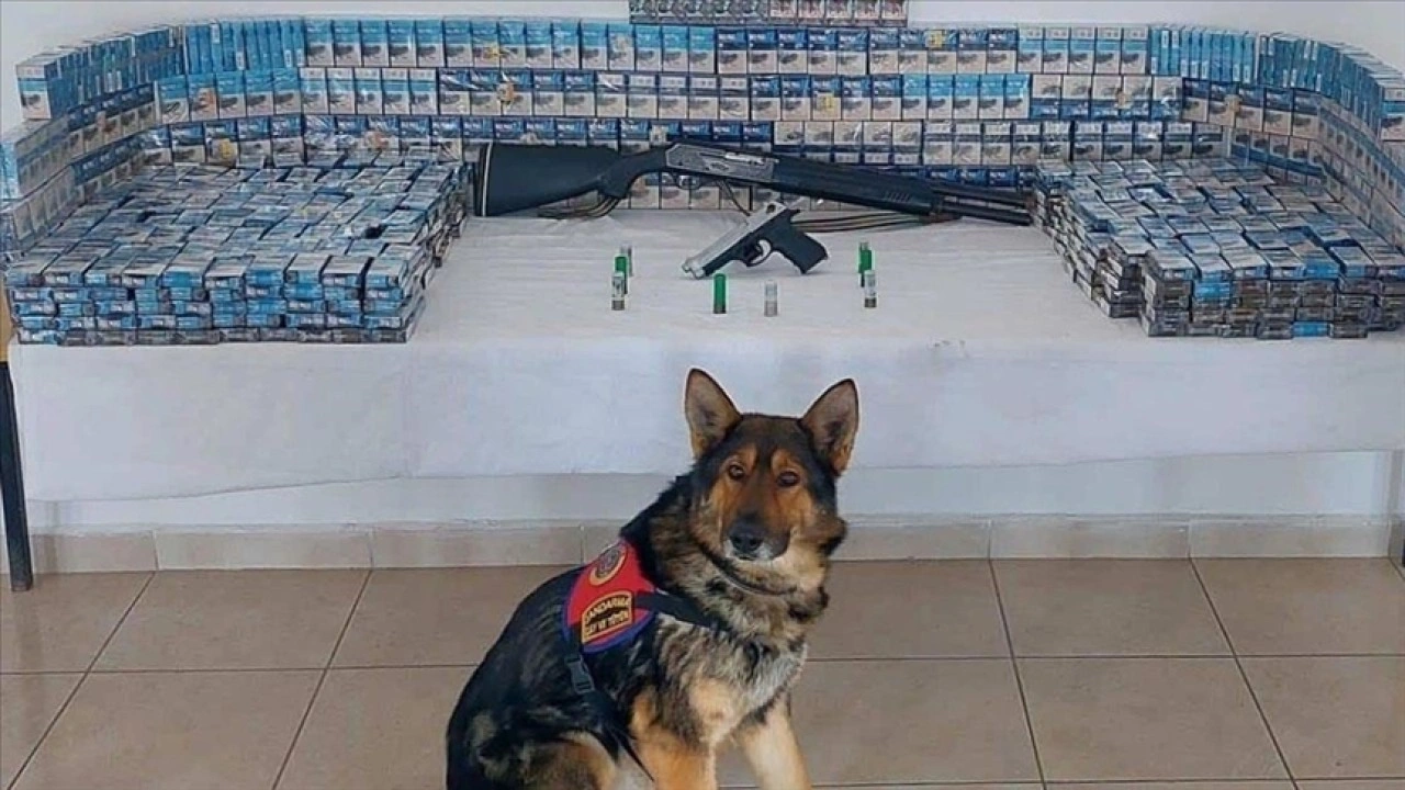 Erzurum'da jandarma ekipleri dedektör köpek "Zahir"in desteğiyle düzenledikleri operasyonlarda, gümrük kaçağı 1754 paket sigara, 4 tüfek ve tabanca ele geçirdi