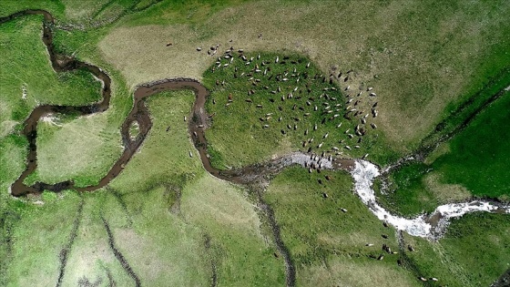 Büyüleyici güzelliğe sahip göletler ve doğanın kılcal damarları gibi kıvrılan menderesler, drone ile görüntülendi.