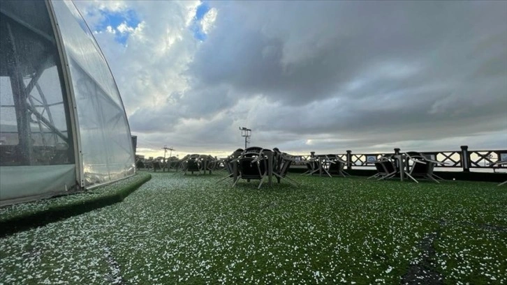 Her yıl binlerce yerli ve yabancı turisti ağırlayan Palandöken Kayak Merkezi bölgesi de etkili dolu yağışı sonucu beyaz örtüyle kaplandı.
