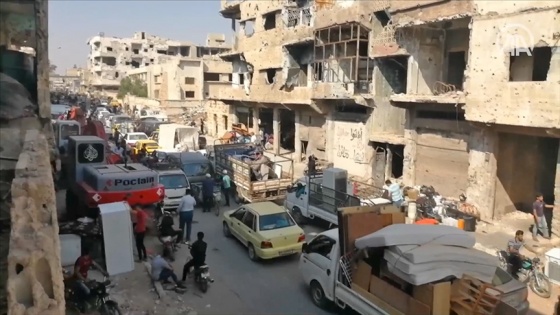 AA, Dera el-Beled'de rejim güçlerinin saldırılarından kaçan sivillerin göçünü görüntüledi.