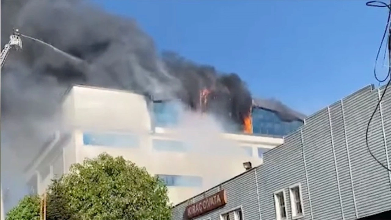 Esenyurt'ta 5 katlı tekstil atölyesinde çıkan yangına itfaiye ekipleri müdahalede bulunuyor