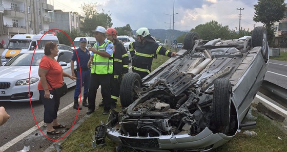 Kazadan 5 dakika sonra emekli polisin eşi olay yerinden geçtiği sırada eşinin kazasına denk geldi. Olay anını anlatan Nevin Usta, “Kardeşimle birlikte Ordu’ya gidiyorduk. Trafiğin yavaş aktığını görünce kaza olduğunu tahmin ettik. İleride takla atan arabayı bizim arabanın rengine benzettik. Olay yerine biraz daha yakınlaşınca plakadan bizim araba olduğunu öğrendim. Eşimin sağlık durumunun iyi olduğunu öğrenince rahatladık. Tesadüfün de böylesi” dedi.