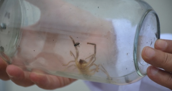 Diğer örümcek türlerinden farklı olan ve Bilecik'te ilk defa görülen 'Sarı Kız' için önlemler alındı. Bilecik Belediyesi Sokak Hayvanları Tedavi ve Rehabilitasyon Merkezinde bir kavanoz içinde muhafaza edilen örümcek; böcek, sinek ve et ile besleniyor.