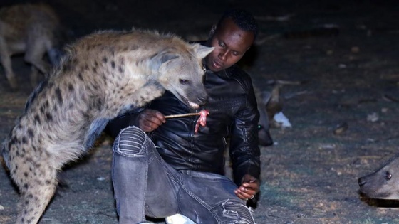 Etiyopyalı Yusuf vahşi sırtlanları eliyle besliyor