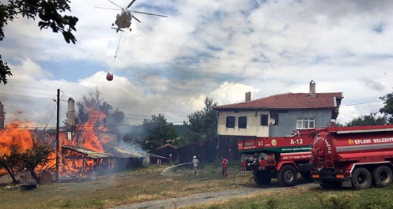 Karabük'ün Eflani ilçesinde çıkan yangında iki katlı ev kül oldu. Çıkan yangına Karabük'te konuşlanan yangın söndürme helikopteri de müdahale etti.
