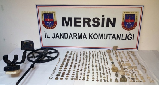 Mersin Valiliğinden yapılan yazılı açıklamaya göre, Tarsus İlçe Jandarma Komutanlığınca yapılan istihbarat çalışmalarında, Köselerli Mahallesi’nde İ.M. isimli kişinin tarihi eser kaçakçılığı yaptığı bilgisine ulaşıldı. Bunun üzerine harekete geçen jandarma ekipleri, söz konusu kişinin evinde arama yaptı. Aramada, 1 adet çivi, 6 adet yüzük, 8 adet mühür, 24 adet taş obje, 76 adet metal obje, 1 adet ok ucu ve 355 adet sikke olmak üzere toplam 471 adet çeşitli dönemlere ait tarihi eser ile 1 adet dedektör ele geçirildi.