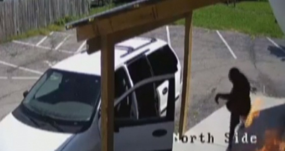 Amerika Birleşik Devletleri’nde kaydedilen görüntülerde, minivan ile bir evin önüne gelen şahsın, molotofkokteyli atarak evi yakmak istediği görülüyor. Kırılan şişeden yayılan alevler şahsın üzerine de sıçrayınca, acemi kundakçı bir anda yanmaya başlıyor.