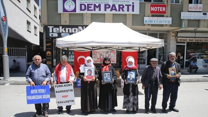 Muş'ta terör örgütü PKK tarafından dağa götürülen çocuklarına kavuşma ümidiyle DEM Parti İl Başkanlığı binası önünde eylem yapan aileler, bu Kurban Bayramı öncesinde de evlatlarından ayrı olmanın üzüntüsünü yaşıyor.