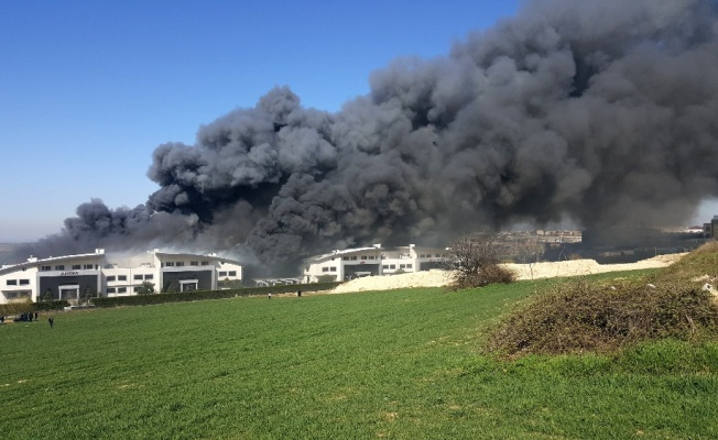 Patlamanın da meydana geldiği yangında, yoğun duman çevreye yayılırken yanan fabrikanın havadan çekilen görüntülerinde fabrikanın tüm çatısının alevlere teslim olduğu görülüyor.