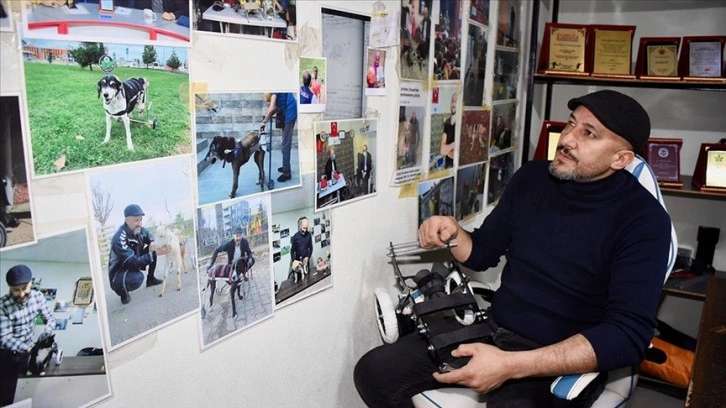 Evli ve 2 çocuk babası 38 yaşındaki Abdulmenaf Çelik, çeşitli nedenlerle felçli kalan veya uzuvları ampute edilen hayvanlar için 7 yıl önce atölyeye çevirdiği 20 metrekarelik deposunda yürüteç yapmaya devam ediyor.