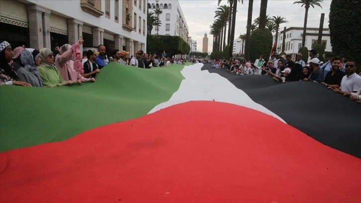 Fas'ta binlerce kişi, İsrail'in 7 Ekim 2023'ten bu yana saldırılarını sürdürdüğü Gazze Şeridi'ne destek için 54 kentte gösteri düzenledi.