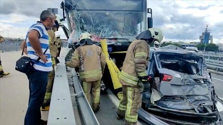 Arkadan gelen araçların da İETT otobüsüne çarpması ile 7 aracın karıştığı kaza yerine itfaiye ve sağlık ekipleri sevk edildi.