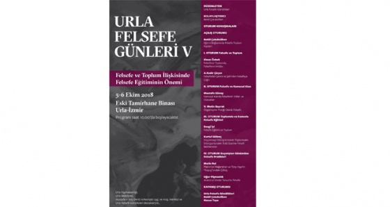Urla Felsefe Gönülleri tarafından, 5-6 Ekim tarihlerinde beşincisi düzenlenecek Urla Felsefe Günleri'nde alanlarında uzman isimler ‘Felsefe ve Toplum İlişkisinde Felsefe Eğitiminin Önemi'ni tartışacaklar. 2014 yılından beri düzenlenen ve aralarında ünlü felsefecilerin de bulunduğu etkinlik iki gün sürecek etkinlikte, ‘Felsefe ve Toplum', ‘Felsefe ve Kamusal Alan', ‘Toplumda ve kamuda felsefe eğitimi', ‘Geçmişten Günümüze Felsefe Pratikleri' oturumları düzenlenecek.