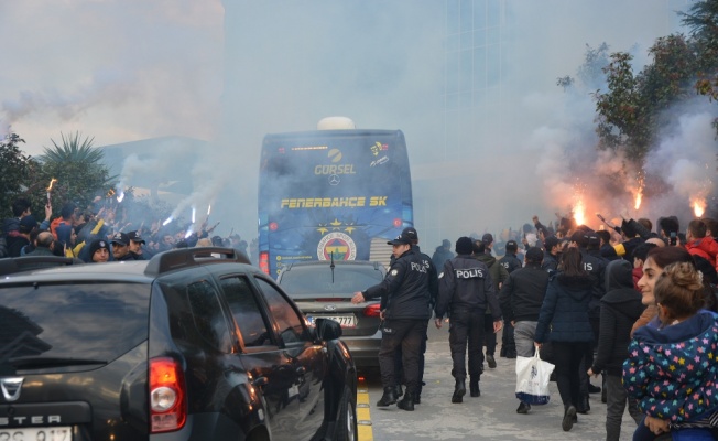 Bursaspor ile yarın deplasmanda oynayacağı maç için şehre gelen Fenerbahçe kafilesini sarıl-lacivertli taraftarlar meşalelerle karşıladı.