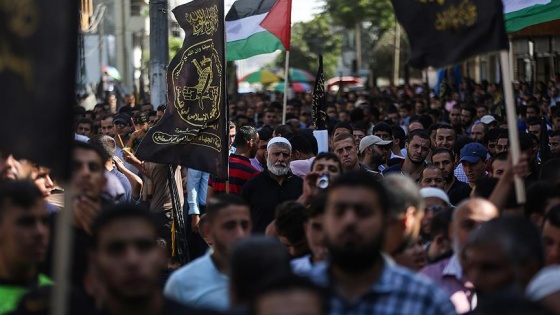 İslami Cihad Hareketi tarafından organize edilen gösteride yüzlerce Filistinli, Gazze kentinin sokaklarında, Filistin bayrağı ve ayaklanmaya ilişkin pankartlar taşıyarak yürüdü.
