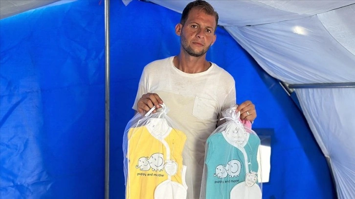Gazze Şeridi'nin kuzeyindeki evlerinden zorla yerinden edilerek Deyr el-Belah kentine sığınan Muhammed Ebu Kumsan ve eşi Cumane Arife, 10 Ağustos'ta biri kız diğeri erkek, ikiz bebek sahibi olmuştu.