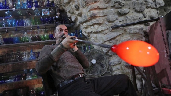 Filistinli cam ustası Yakub en-Netşe, atölyesinde ürettiği birbirinden farklı şekil ve renklerdeki yaklaşık 250 parça cam eşya ile El-Halil'de yüzlerce yıllık geçmişi olan bu geleneksel sanatı yaşatmaya çalışıyor.