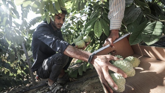 Filistinli genç, bakımı dikkat ve zahmet isteyen tropik meyveyi ailesiyle birlikte yetiştirerek kazanç sağlamaya çalışıyor.