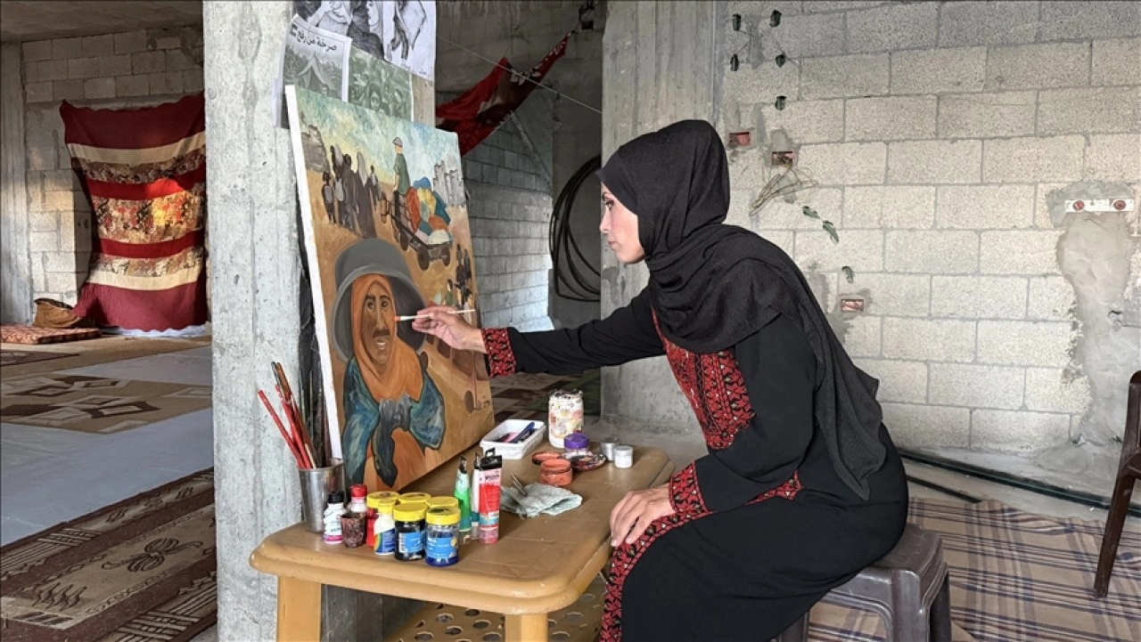 Filistinli kadın ressam, "Yaptığım bütün resimlerin 'beni' anlattığını düşünüyorum. Çünkü, açlığı, göçü biz de yaşadık. Bunlar yaşananların çok küçük bir kısmı, gerçekte yaşadıklarımız bunların kat kat fazlası." diye konuştu.