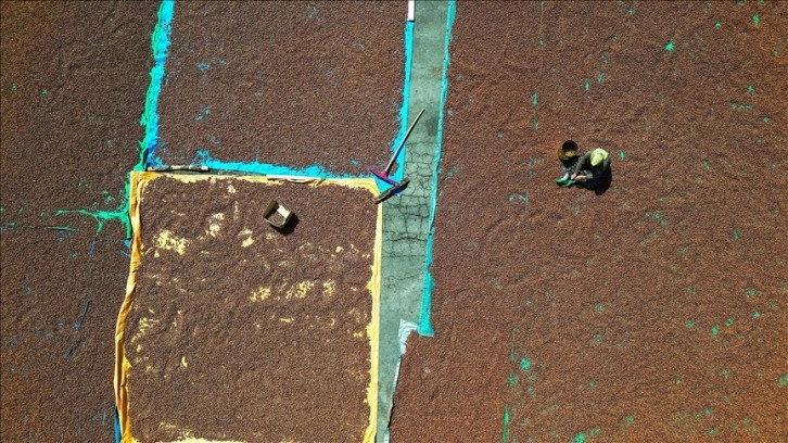 Hasadın ardından fındığı patoza vurarak zurufundan (yeşil kabuğu) ayıran üreticiler, satış öncesi son işlem olan güneşte kurutma sürecine devam ediyor.