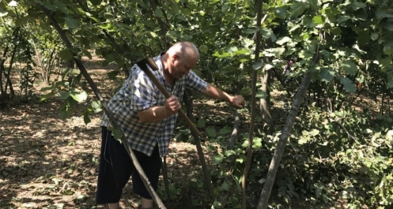Okumuş, kendisine müdahale eden komşularına aldırış etmeden fındık dallarını tek tek kesti.