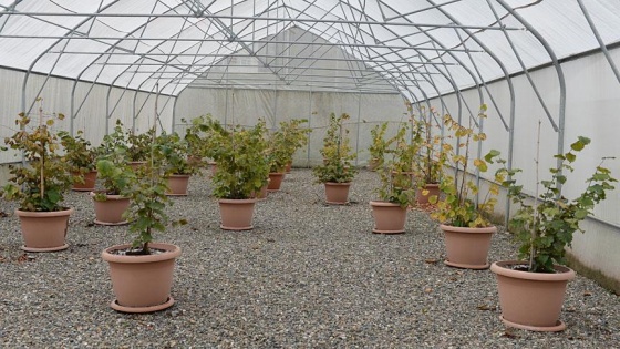 Fındıkta önemli hastalıklardan biri olan elma mozaik virüsünden ve kök ur nematodlarından ari olduğu tespit edilen 30 damızlık fındık fidanı iki serada muhafaza ediliyor.