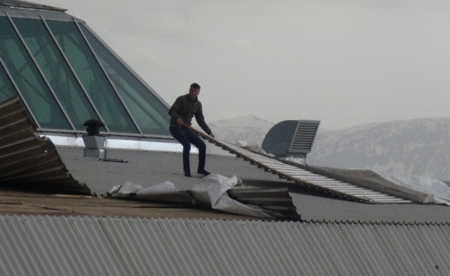 Erzincan’da etkili olan fırtına nedeniyle bir çağrı merkezinin çatısı uçtu.