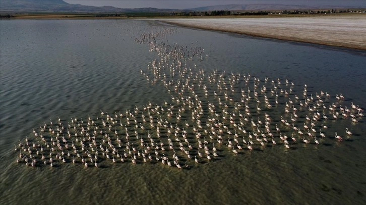Kasımın sonuna kadar Arin Gölü'nde kalacak "flamingolar", havaların soğumasıyla sıcak bölgelere göç edecek.