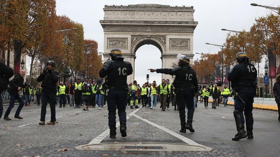 Fransa'da akaryakıt zamlarını protesto eden "Sarı yelekliler”, başkent Paris'in Champs-Elysees Caddesi'nde gösteri düzenliyor.