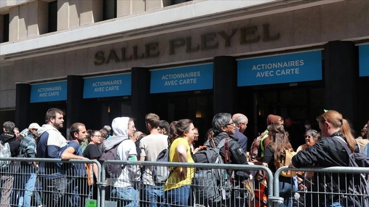 Aktivistlerden Charles De Lacolombe, AA muhabirine yaptığı açıklamada, TotalEnergies'in Genel Kurulu toplantısını engellemek için toplandıklarını dile getirdi.