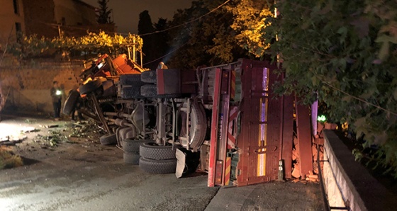 Olay, Bursa'nın merkez Yıldırım İlçesi Maltepe Mahallesi'nde meydana geldi. Edinilen bilgiye göre, Manisa'dan yüklediği tuğlaları Bursa'ya getiren Fatih Demirel kontrolündeki 45 LJ 224 plakalı kamyon, 3. Çoruh Sokak üzerinde yokuş aşağıya seyir halindeyken freni boşaldı. Freni boşalan tonlarca ağırlığındaki kamyon, sokak üzerinde bulunan bir evin bahçesine girerek yan yattı. Sürücü Demirel kabin içerisinde yaralanırken, kamyonun girdiği evde yaşayan 6 yabancı uyruklu vatandaşın sahur için hazırlık yaptığı esnada ayakta olmasından dolayı olası bir faciadan dönüldü. Çarpmanın şiddetiyle sesi duyan mahalleli durumu polis, sağlık ve itfaiye ekiplerine haber verdi. Komşuların kamyondan mazot kaçağı olmasından dolayı yaklaşamadığı kamyondan kendi imkanlarıyla çıkan Demirel, olay yerine gelen sağlık ekipleri tarafından tedavi altına alınarak Yüksek İhtisas Eğitim ve Araştırma Hastanesi'ne kaldırıldı. Kamyonda mazot kaçağı olduğunu tespit eden ekipler, çevrede geniş güvenlik önlemi alırken yola devrilen tuğlaların kaldırılması için çalışma başlatıldı