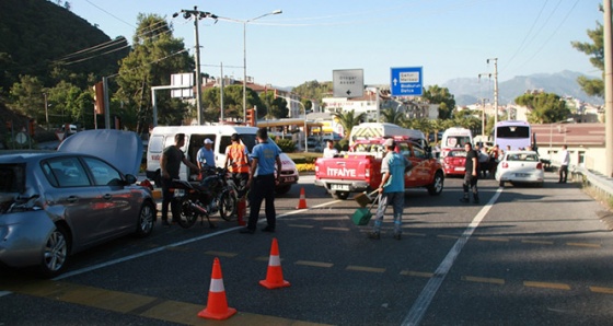 Kaza bugün saat 07.30 sıralarında ilçe girişindeki kavşakta meydana geldi. İddiaya göre, Gökova’dan aldığı 27 sivil personeli Aksaz Deniz Üs Komutanlığına götürmekte olan Metin Gündüz (29) idaresindeki taşıma firmasına ait 48 M 4959 midibüsün ilçe girişine yaklaştığı sırada freni patladı. Midibüsü durduramayan sürücü önce kırmızı ışıkta bekleyen araçlardan birine çarptı. Çarpmanın etkisiyle 5 aracın karıştığı zincirleme trafik kazası meydana geldi. Hızı düşen midibüs güçlükle durabildi.