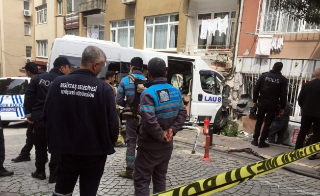 Beşiktaş’ta freni patlayan servis minibüsü demir korkulukları kırarak apartmana daldı. Apartman duvarının yıkıldığı kazada servis şoförü ve daire sakini yaralandı.