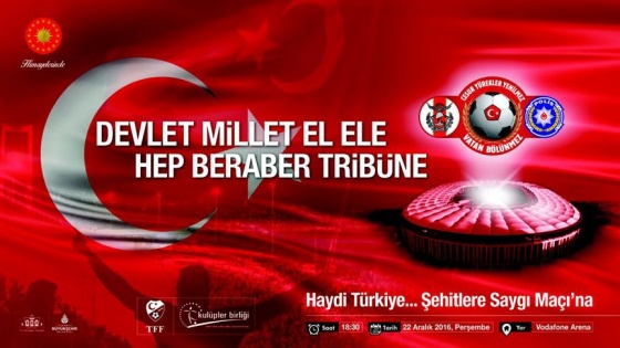 Türkiye Futbol Federasyonu ve Kulüpler Birliği Vakfı başta olmak üzere futbol ailesi, Türkiye'nin son dönemde maruz kaldığı terör saldırıları karşısında milletin yanında olduğunu göstermek ve teröre karşı ortak bir duruş sergilemek amacıyla Cumhurbaşkanı Recep Tayyip Erdoğan himayesinde "Şehitlere saygı maçı" düzenleyecek.