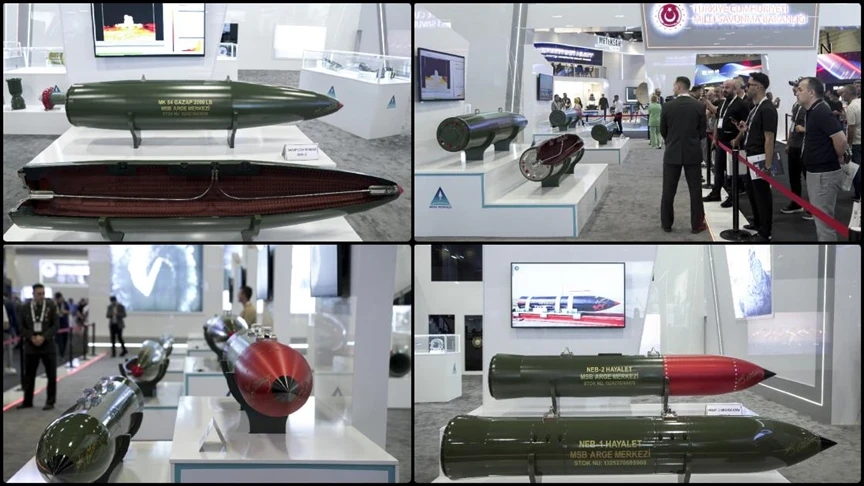Türk savunma sanayisine güç katan birçok projenin sergilendiği fuarda, yeni ürünler de tanıtılıyor. MSB AR-GE Merkezi de geliştirdiği GAZAP ve HAYALET isimli uçak bombalarını IDEF 2025'te ilk kez sergiledi.