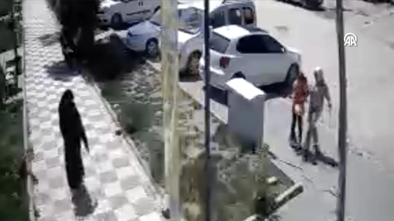 Kızına siper olan anne, elinden tuttuğu kızıyla bölgeden koşarak uzaklaştı.