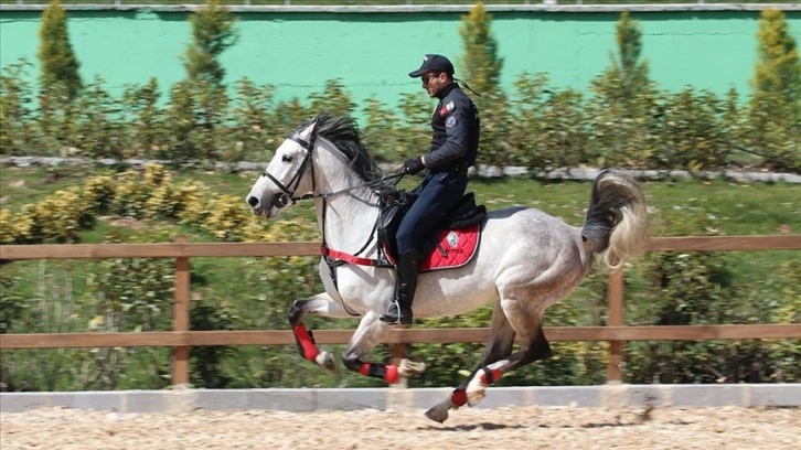 Hemen her gün eğitim alan ve antrenman yapan polis memurları ve atlar, kentte huzur ve güvenliğin tesisi için görevlerini sürdürüyor.