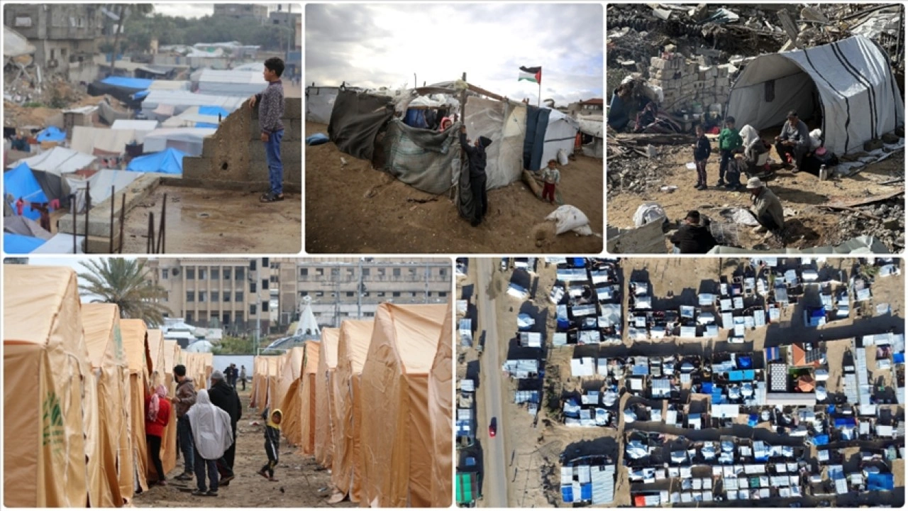 Gazze Şeridi'nde son günlerde etkili olan soğuk hava dalgası, şiddetli yağış ve rüzgarlar, İsrail saldırıları nedeniyle evlerini kaybedip derme çatma çadırlarda yaşamaya çalışan Filistinlilerin hayatını son derece zorlaştırdı.
