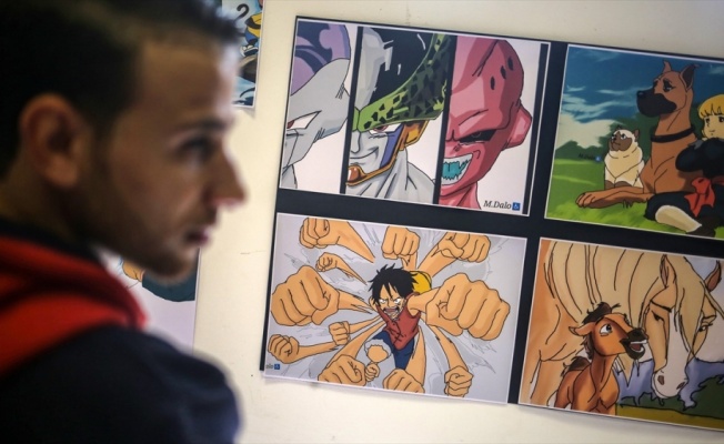 GAZZE (AA) - Resim tutkunu Filistinli engelli genç Muhammed ed-Delv, Gazze Şeridi'nde sergi açtı.