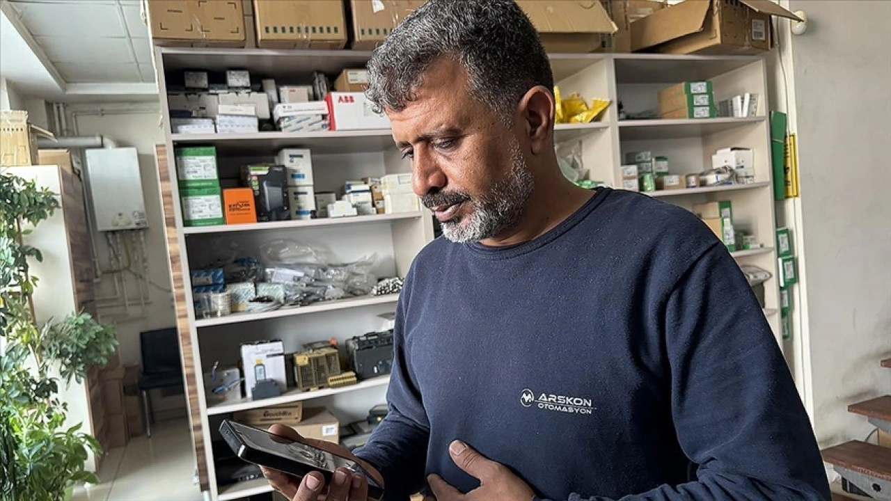 ????Konya'da bir sanayi sitesindeki firmada çalışan İnmilad, Gazze Şeridi'ndeki kamplarda yaşayan ailesiyle zaman zaman telefonda görüşüyor.