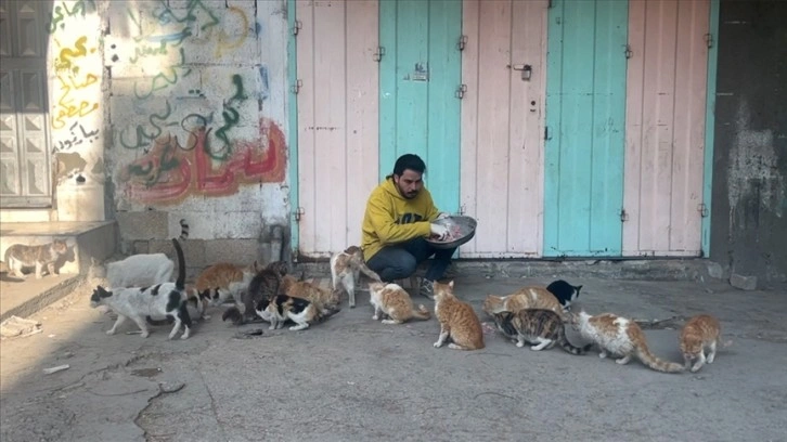 Filistinli hayvansever AA muhabirine, insanların bile yiyecek ekmek bulmakta zorlandığı bölgede, gıda kıtlığına rağmen kedi ve hayvanları beslemeye çalıştığını anlattı.